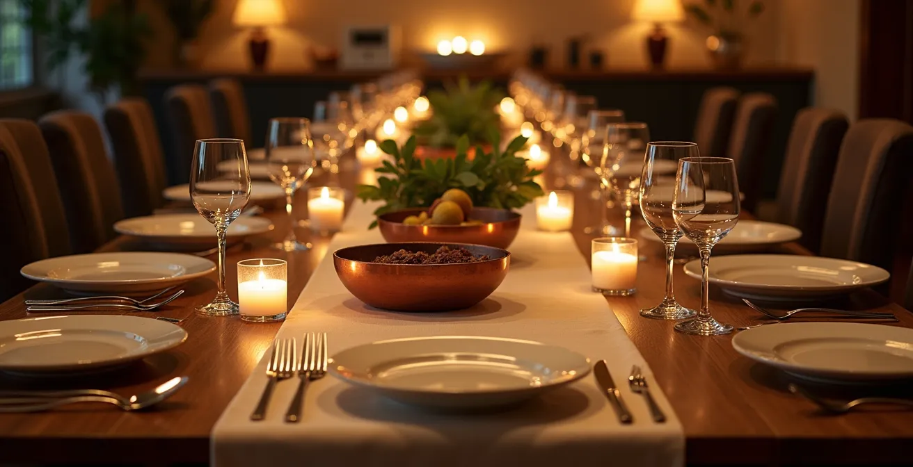 Completare queste operazioni con calma la sera precedente ha un duplice vantaggio. Da un lato, si affronta il compito con una mente più lucida, potendo curare i dettagli senza la pressione del tempo. Dall’altro, il giorno del pranzo, entrare in una sala da pranzo già perfettamente allestita ha un potentissimo effetto psicologico: dà la sensazione che gran parte del lavoro sia già fatta, infondendo calma e controllo. È il segnale che la regia dell’evento è saldamente nelle tue mani.